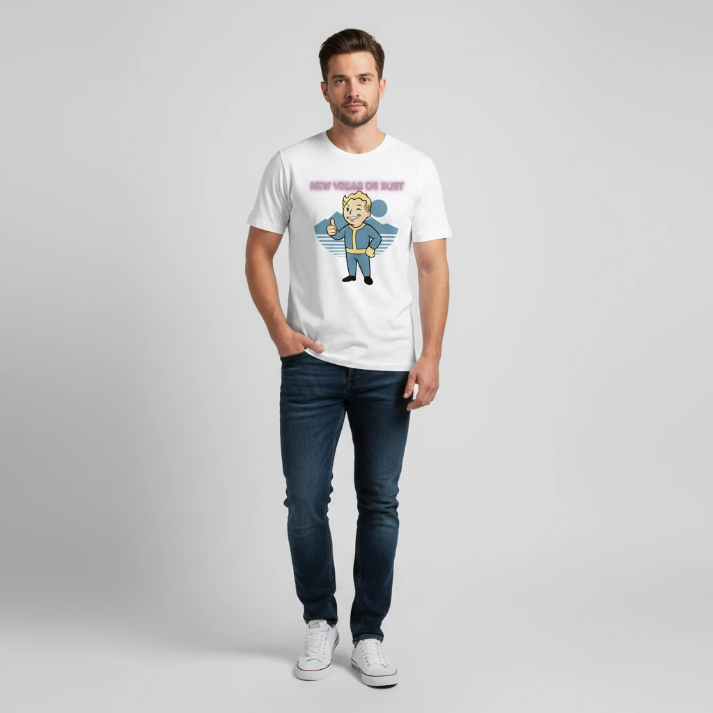 Fallout Vault Boy New Vegas or Bust Minimalist Neon Vector Graphic