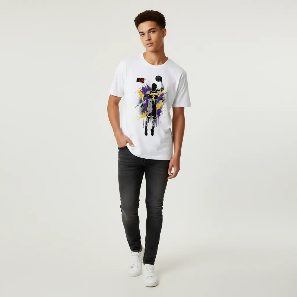 Lakers vs Nuggets Luka Fadeaway Collage Art T-Shirt - 0.5 Sec Victory