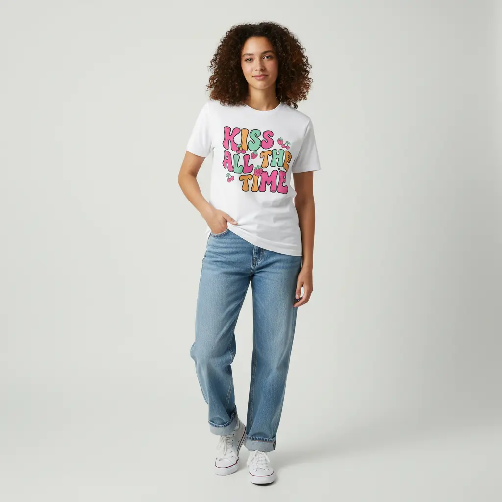 Retro 70s Disco 'Kiss All The Time' Hand-Drawn Doodle Graphic