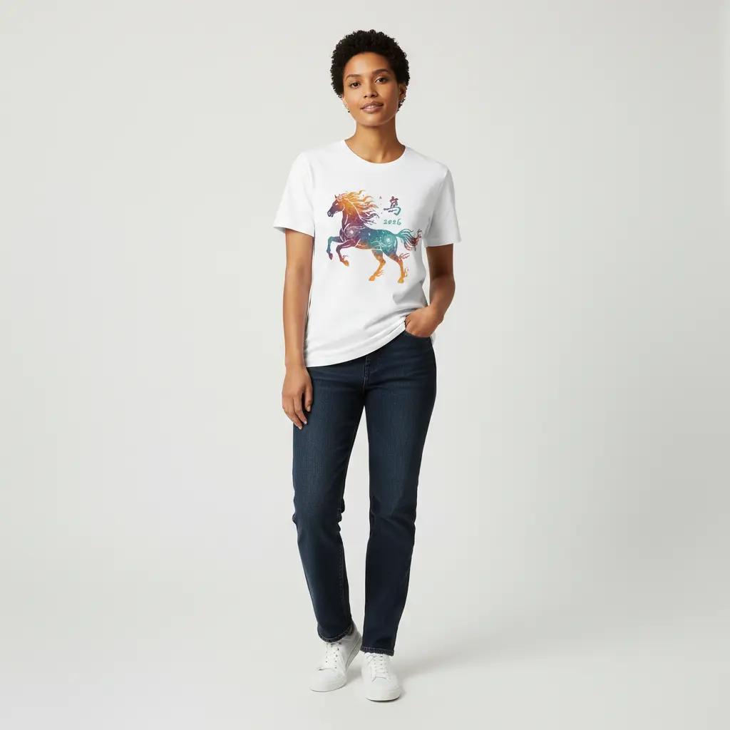 2026 Year of the Horse Surreal Fiery Horse Calligraphy Graphic T-Shirt